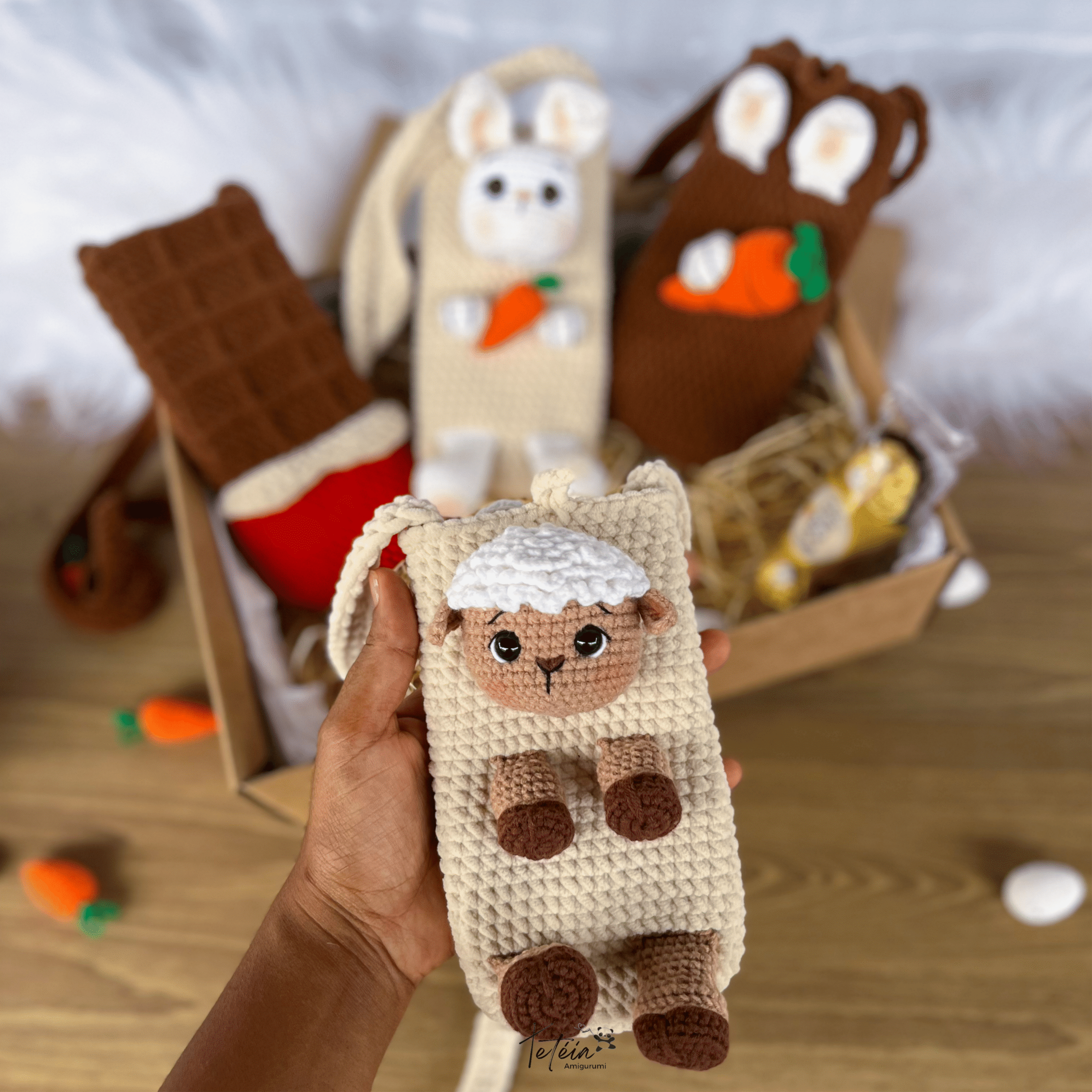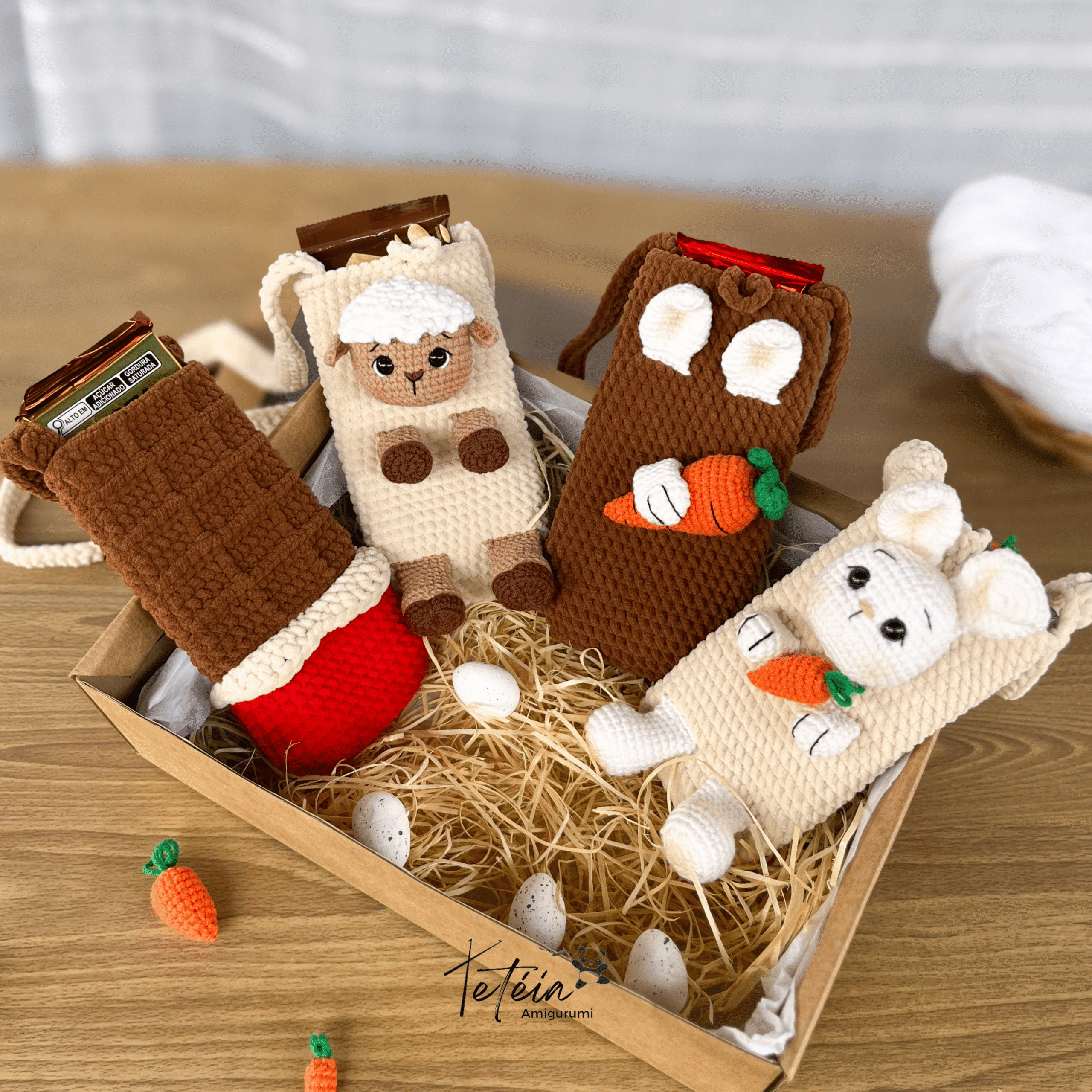 Bolsas porta chocolates 2 em 1, perfeitas para presentear e também para vender — não somente na Páscoa, mas o ano todo. Uma peça criativa e funcional que primeiro guarda chocolates e depois se transforma em uma bolsinha linda para carregar celular, chaves ou pequenos objetos.